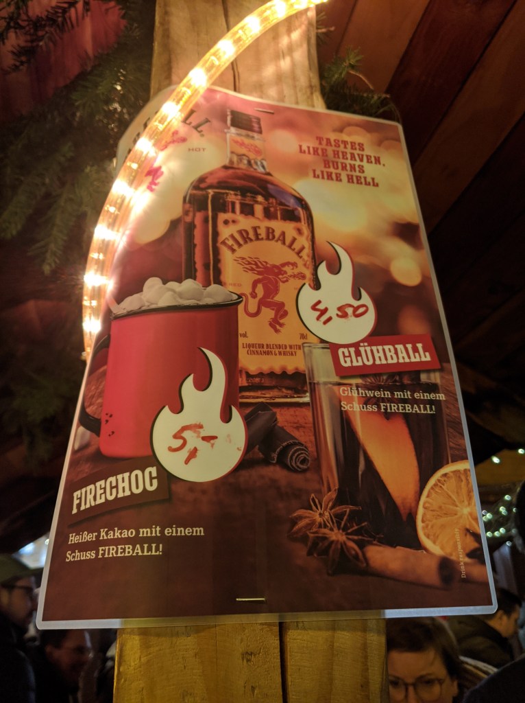 - Feuerzangenbowle: The above served with a sugar cube soaked in rum, which is set on fire and allowed to drip into the mug. You heard me.