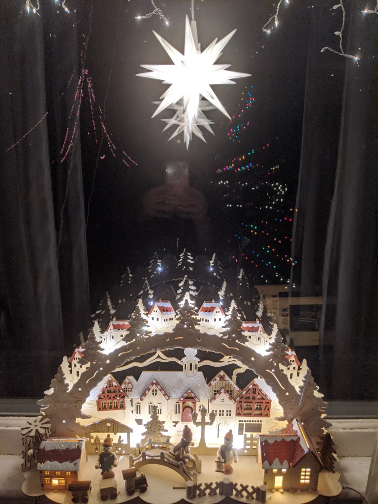 - Sterne: Or, stars. Based on the small sample of residential houses and yards that I saw, I am under the impression that Germans are more fond of decorating the insides of their windows for Christmas than they are fond of outdoor lights displays. One of the things that was in most everyone’s window was a star of some type. The two most popular types were paper star lanterns in every color you can imagine. And Moravian stars. You will want to buy one and, when you do, note that you may need to buy a light separately, or a light that works with the type of wall plugs and outlets in your country.