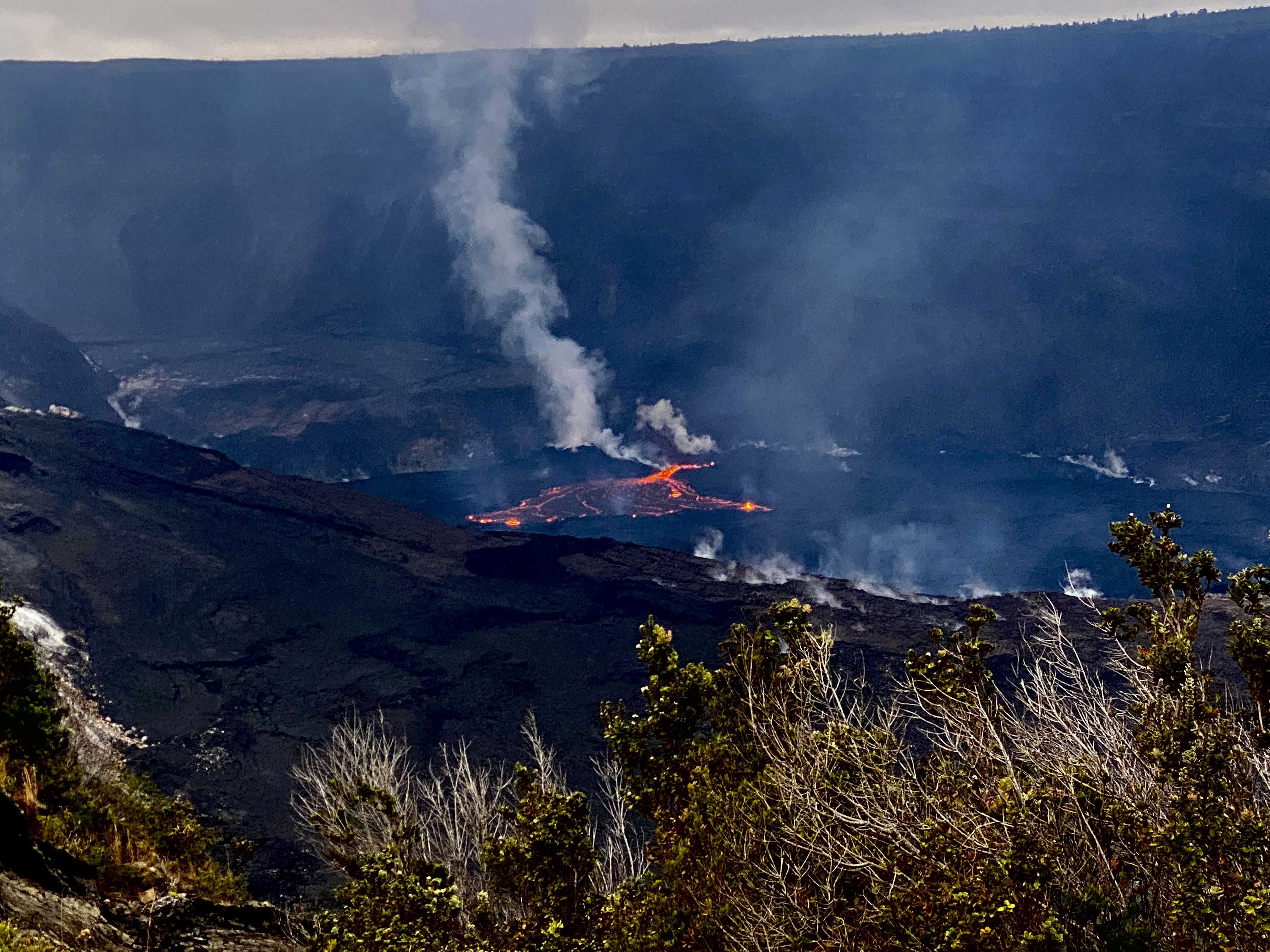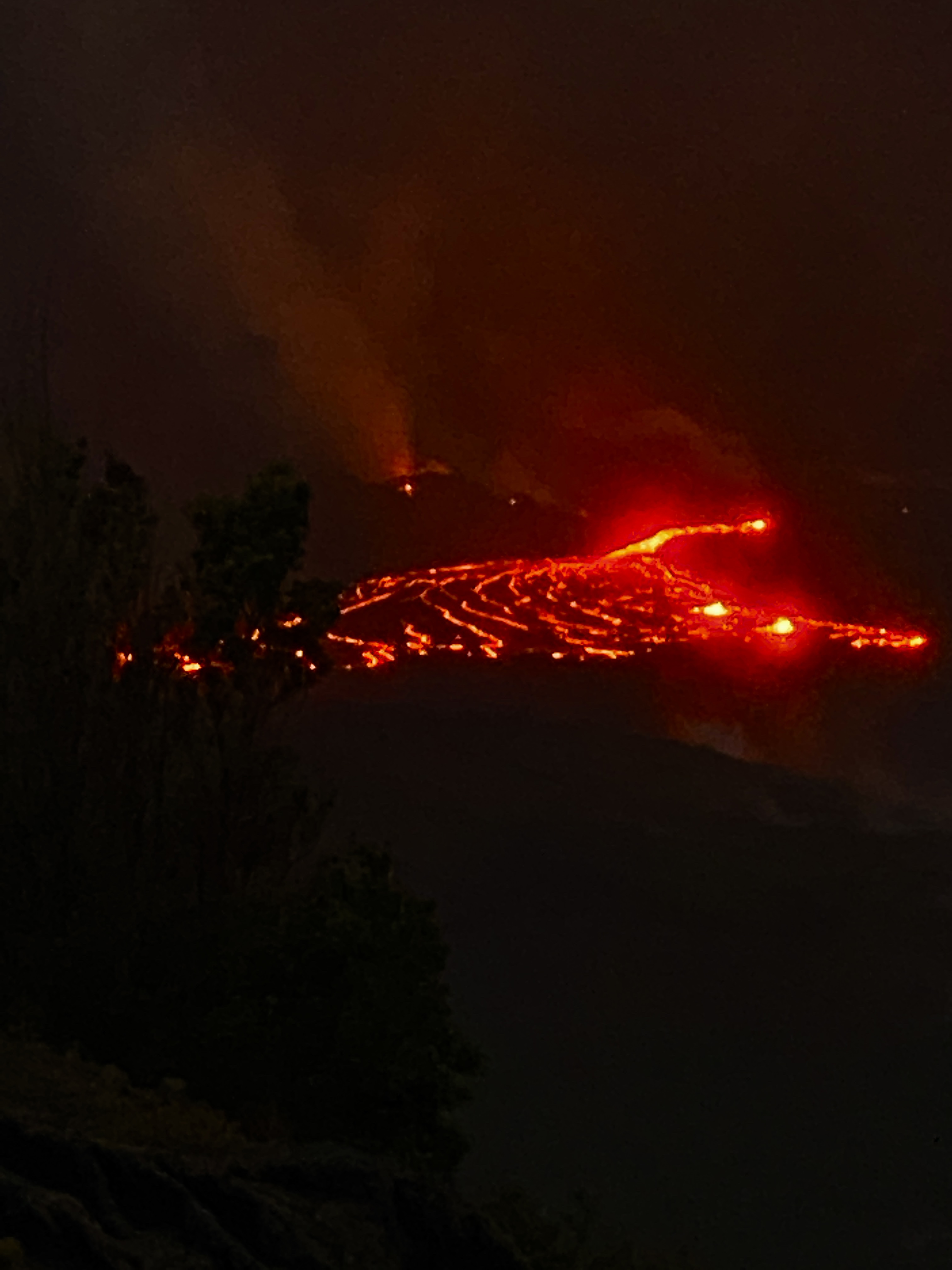 A year ago when I visited Hawaii Volcanoes National Park located on the Big Island of Hawaii, I spent an entire day there and was completely enchanted with this massive national park. After the sun went down that day, I observed the glow of the active volcano, which lit the sky up bright pink and red, but no lava was visible from in the park. Not this time. There was active lava in the Kīlauea volcano caldera. ACTIVE LAVA. Like, acres and acres of fire, coming out of the earth, that you can see. Granted, we could only look at it from about a mile and a half away, per the park rangers, but there was something about seeing active lava that turned me into a drooling caveperson. I felt like Tom Hanks’ character in Cast Away after he lit the fire on the beach. Holy wow. As Caren said, “achievement unlocked.”